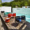Die Stühle, Bänke und Tische sind in vielen verschiedenen fröhlichen Farbkombinationen erhältlich.