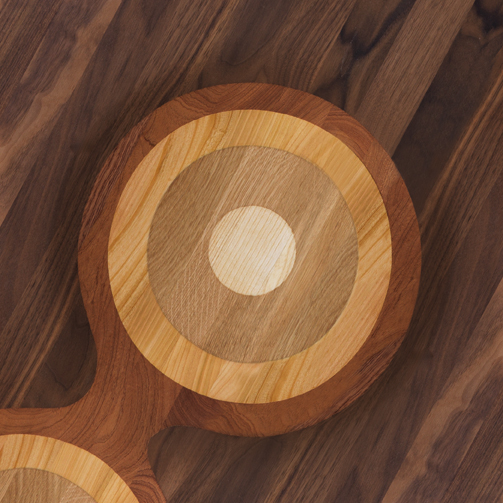 Die Sitzbank Ripples, Gewinner des Industrie-Designpreises Compasso d’Oro (Goldener Zirkel) im Jahr 2004, ist Ausgangspunkt für eine Kollektion, zu der verschiedene Einrichtungsobjekte gehören. Teil dieser Kollektion ist der Tisch mit einer Glasplatte, die den Blick auf das Gestell zulässt, das aus einem Verbund von fünf verschiedenen Massivhölzern besteht. Neben Schwarznussholz sind dies Mahagoni-, Kirsch-, Eichen und Eschenholz. Farben und Faserrichtung sind so definiert, dass eine elegante polychrome Wirkung entsteht. Die einzigartige und poetische Verarbeitung des Holzes in einem streng ästhetischen Umfeld erinnert an eine "flüssige Bewegung".