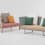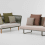 Kettal Bitta zeichnet sich durch ihre besondere Materialkombination aus: Aluminiumstrukturen, mit Polyesterkordeln geflochtene Sitzflächen, bequeme Stoffkissen und Tischflächen aus Teakholz und Stein. Alle verwendeten Materialien sind ausgesprochen wetterbeständig. Sofas, Sessel, Liegen und Hocker erinnern mit ihrem Geflecht an geflochtenen Taue, mit denen die Boote an den Anlegestegen festgezurrt werden. Das Material gibt den Möbeln zum einen Leichtigkeit, strahlt zum anderen aber auch Ruhe und Behaglichkeit aus.