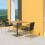 Der Gartentisch ist mit einer Tischplatte aus ökofreundlichem Teakholz versehen, ebenso aber auch mit Aluminium- oder Marmor-Tischplatte erhältlich. Das Aluminiumgestell ist pulverbeschichtet, kratzfest, leicht zu reinigen und verfügt über verstellbare Füße.
