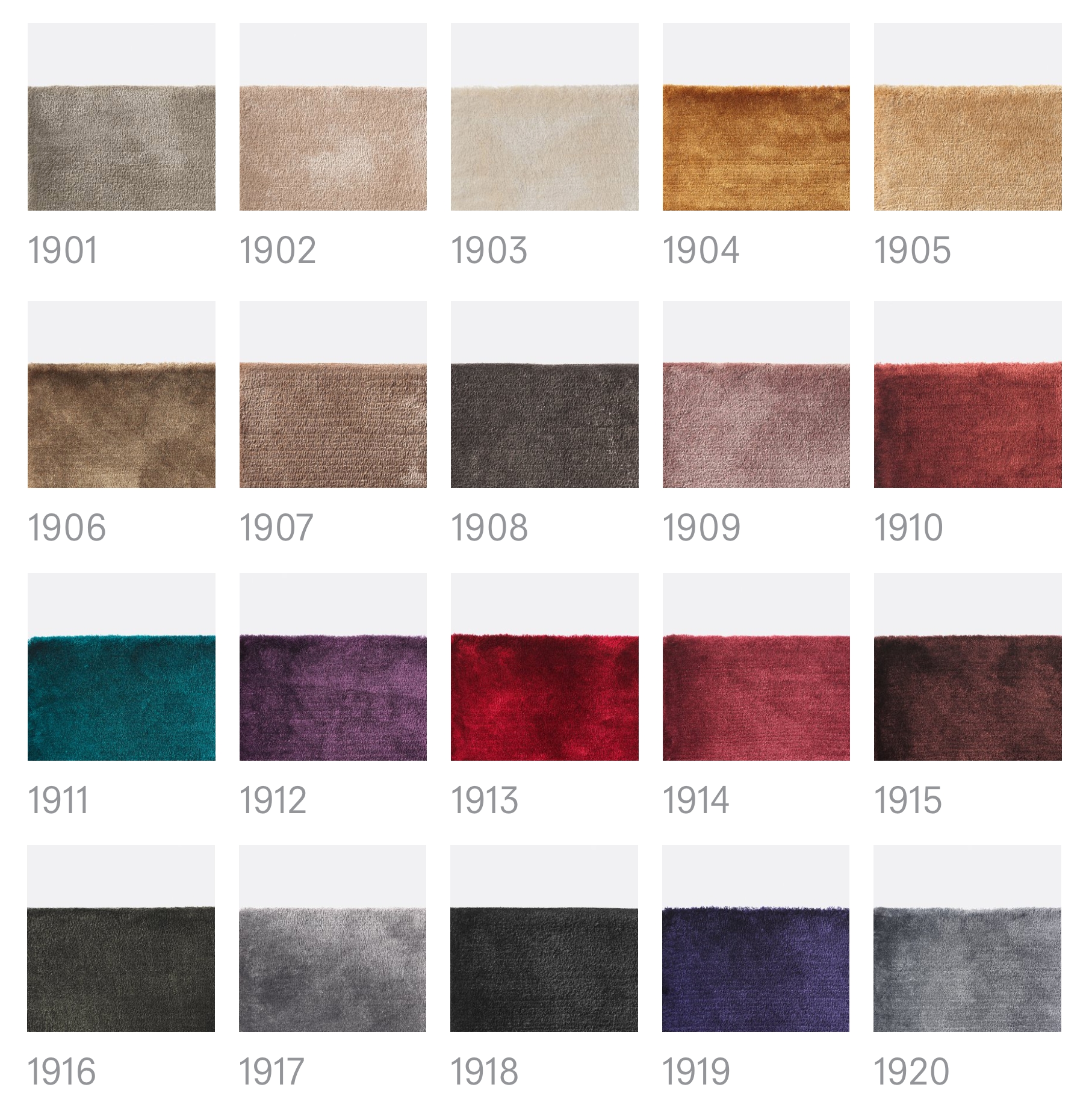 The tufted carpet made of 100% bamboo viscose is suitable for most private applications with appropriate use. Not suitable for stairs and corridors or as a base for castors. With a pile height of 12mm, the maximum dimensions without hem are 450cm x 2000 cm. Available in different colours and sizes.