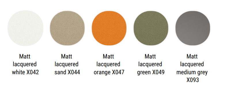 Hängeregal aus MD-Holzfaserpaneelen mit mikro-gaufrierter Lackierung in verschiedenen Farben. Rückwand teilweise mit Melaminbeschichtung farblich passend lackiert. Das Einzelelement, immer umkehrbar, ermöglicht die Realisierung von groß dimensionierten Konfigurationen mit starker Imagewirkung.