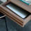 Rechteckiger Sekretär mit furnierter Tischplatte in Nussbaum oder Eiche matt lackiert, geölt und gewachst. In verschienden Farbtönen erhältlich. Einzelne Elemente aus Massivholz. Das Gestell und der Tischaufsatz sind aus Stahl gefertigt und anthrazitfarben pulverbeschichtet.