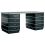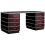 Der Schreibtisch TB 229 mit Zierleisten ist standardmäßig mit zwei Containern, einer Tischplatte aus schwarzem Linoleum (175 x 80cm) und einer Zentralverriegelung ausgestattet.