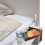 Seitenablage mit Buchhalterung für die Betten Siebenschläfer und Tagedieb. Aluminium eloxiert, pulverbeschichtet.