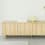 Trapezförmige Holzlamellen schaffen einen visuellen Kontrast in der ebenmäßigen Oberfläche der Fronten und verleihen dem Design Tiefe und Dynamik. Das Rib Sideboard ist mit einem Druckverschluss ausgestattet, der Griffe überflüssig macht und verfügt über herausnehmbare Regalböden.