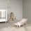 Die Wood Baby- & Kleinkindwippe besteht aus einem Rahmen aus massiver, weiß geölter Eiche, einem Kleinkindsitz und einem Babykissen mit einer Füllung aus Oeko-Tex recyceltem PET. Sitz und Babykissen sind aus Oeko-Tex zertifizierter Baumwolle gefertigt. Das Babykissen wird mit Klettverschluss am Kleinkindsitz befestigt und der Kleinkindsitz wird mit Druckknöpfen und Lederriemen an der Wippe befestigt. Das Baby wird mit dem am Kissen, am Sitz und an der Babywippe befestigten Rückhaltesystem gesichert. Die Babywippe ist sicherheitsgeprüft und definiert sich, wie alle Möbel der Wood Collection, durch ihre klassische nordische Formensprache. Die abgerundeten Details schaffen eine visuelle Leichtigkeit und einen unbeschwerten Ausdruck, außerdem wirken die weichen Formen der Babywippe ansprechend und beruhigend auf das kleine Kind.