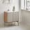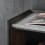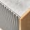 Die eingelassene Marmorplatte aus dunklem Marmor Pietra Grey oder aus hellem Marmor Sky Grey hat eine fast tablettartige Funktion. Hinter den geriffelten Alutüren befindet sich ein verstellbarer Einlegeboden.